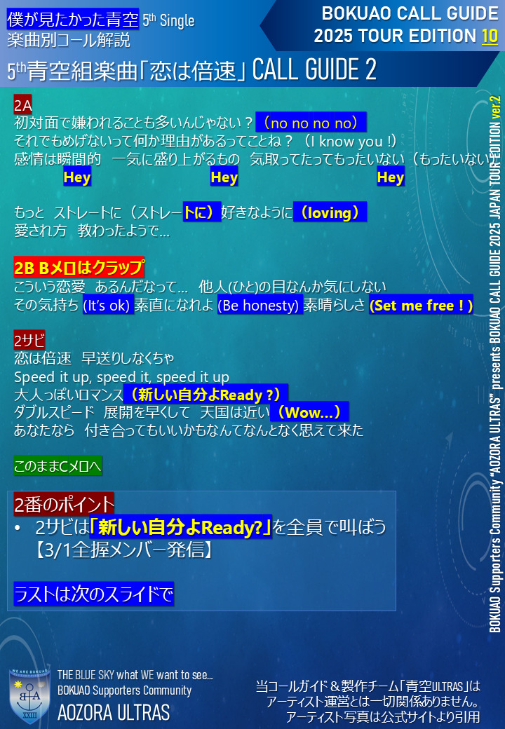 僕が見たかった青空 5thシングル表題楽曲(青空組楽曲)『恋は倍速』のコールガイドです。
