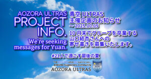 青空ULTRAS 代表Captain.Fです。 既にTwitterでは9月12日に告知しておりますが、この度の山口結杏さんの卒業に際し、感謝の気持ちを伝えるべく青空ULTRASではファン・サポーターの皆様から寄せ書き […]