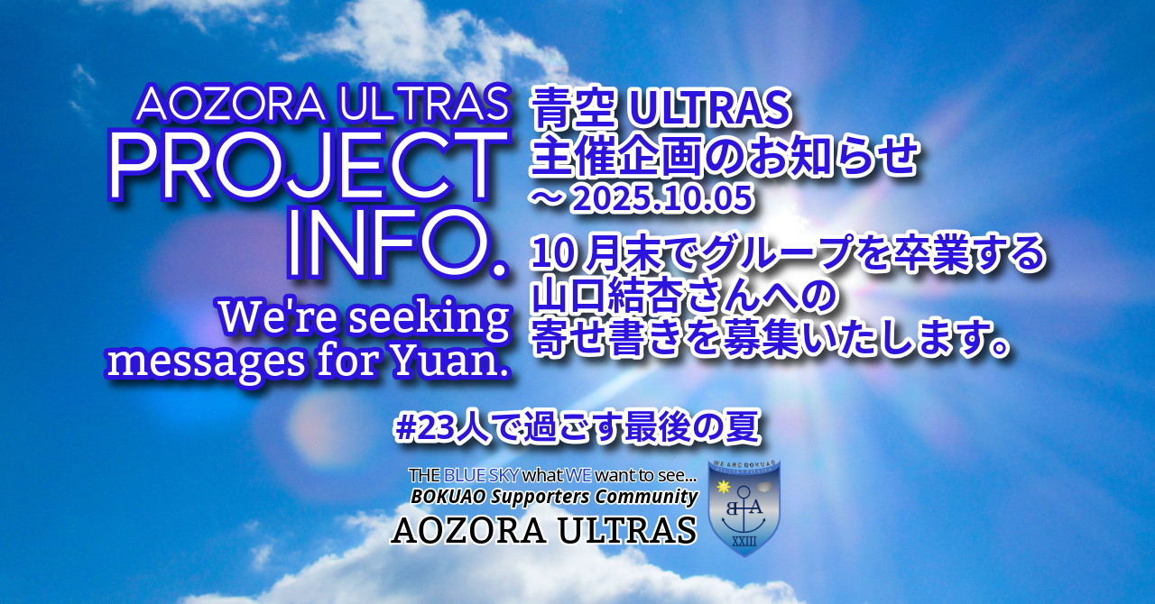 【青空ULTRASよりお知らせ】山口結杏さん卒業に際してオンライン寄せ書きを募集いたします。【10/21追記】