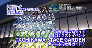 2025年12月28日に『BOKUAO青春納め2025』が開催される立川ステージガーデンの攻略ガイドです! 会場基本情報 アクセス ※公共交通機関の使用を前提とします。 基本的には、というか公共交通機関使用の場合は立 […]