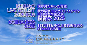 2025年10月18日にKT Zepp Yokohamaで開催された、僕が見たかった青空 秋の学祭コンセプトワンマンライブ『僕青祭2025』のまとめです。 ライブ概要 SETLIST 昼公演 ◆OP MOVIE 伊藤ゆ […]