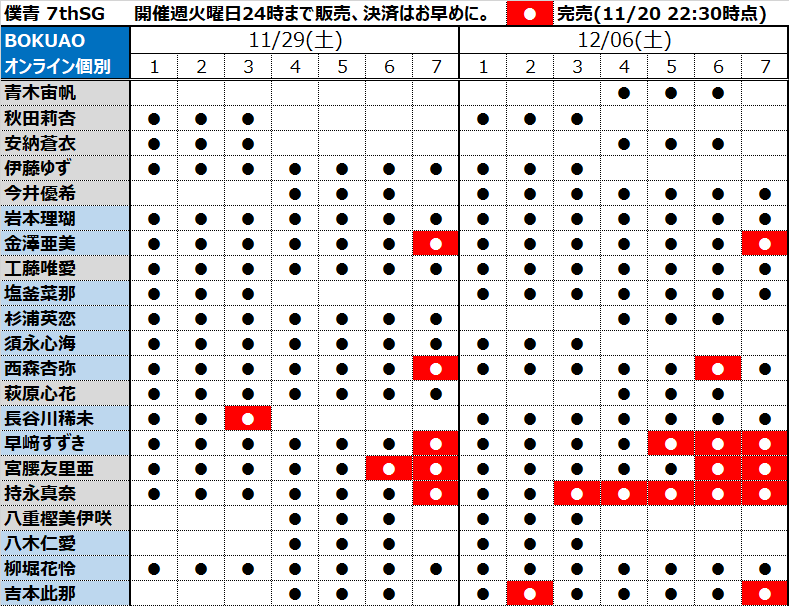 当団体が収集・推計したデータより僕青7thオンライン特典会 第5節(11/23)の考察を実施する。(分析はUNITE the BLUESKYのデータ分析チームによるものです。)