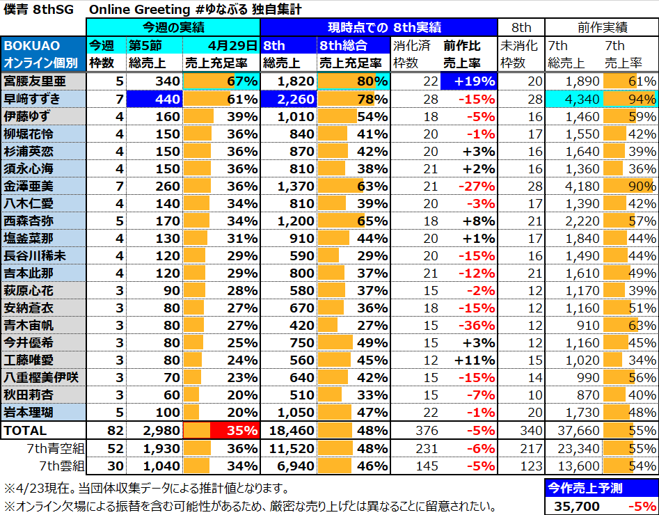 当団体が収集・推計したデータより僕青8thオンラインお話し会 第4節(4/18)および第5節(4/29)の考察を実施する。